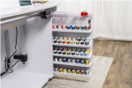 - Thread storage closet holds up to 100 spools of thread